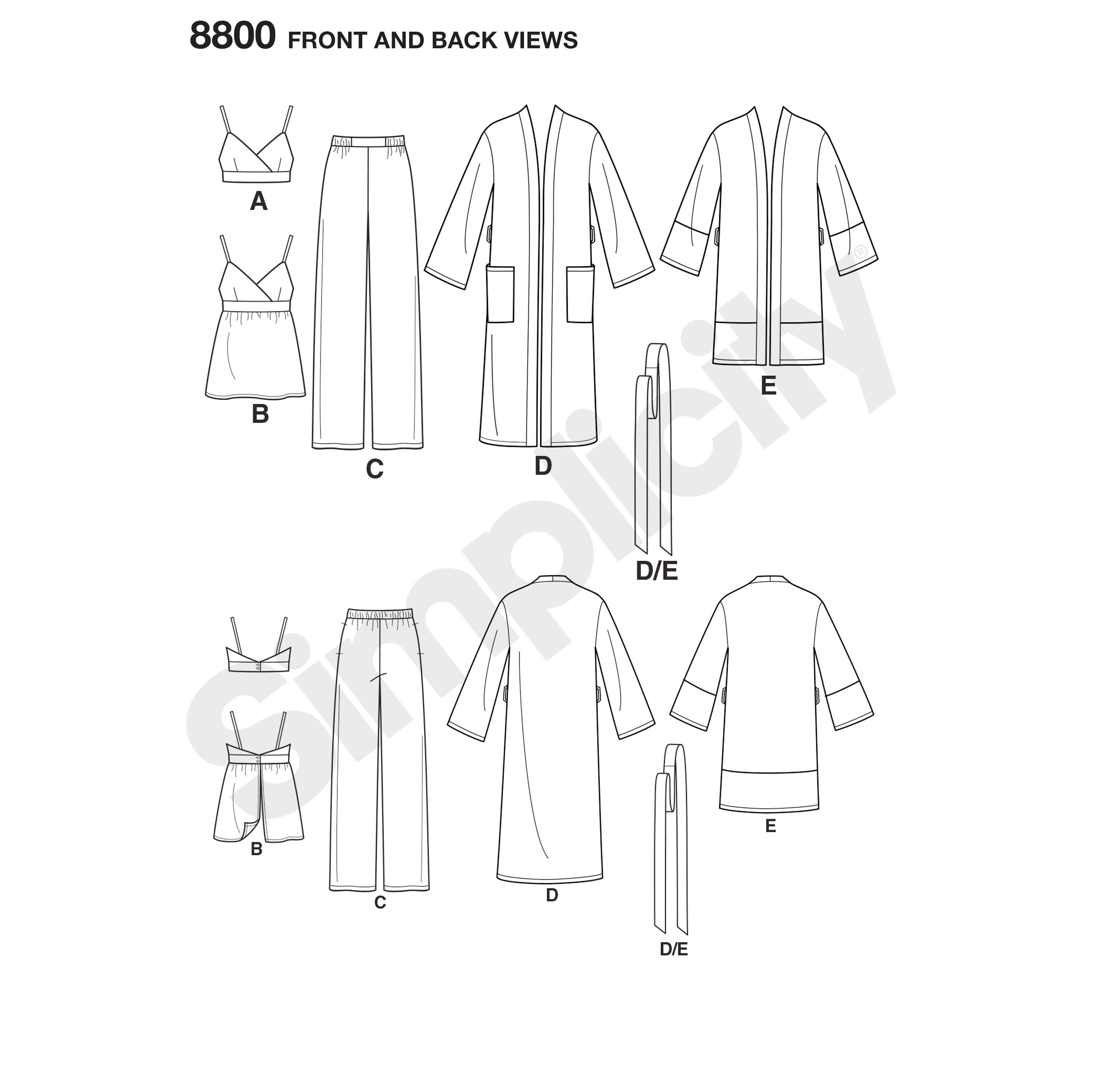 Amazon Com Simplicity Pattern 8800 Misses Robe Pants Top And Bralette Size A Xs Xl Arts Crafts Sewing